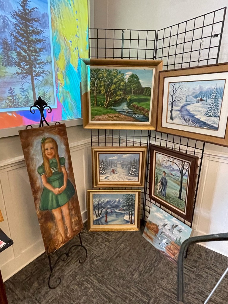 When I walked into the room where the service was to be held today, there was art work everywhere. There were still lifes, landscapes, lots of paintings of cats, dogs, and kids. They were clearly done by an accomplished artist. She was a musician, teacher, mom of 4 and a singer. The video and tributes filled in a lot of spaces for me.